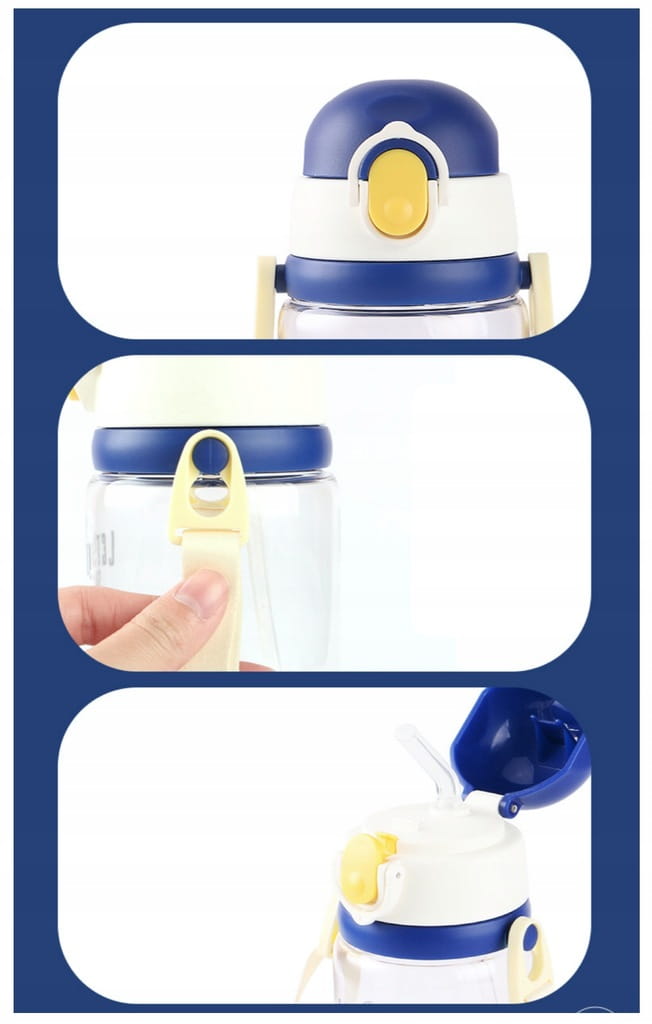 - dwie wymienne, odkręcane pokrywki bidonu: jedna ze słomką, druga z klasycznym ustnikiem,