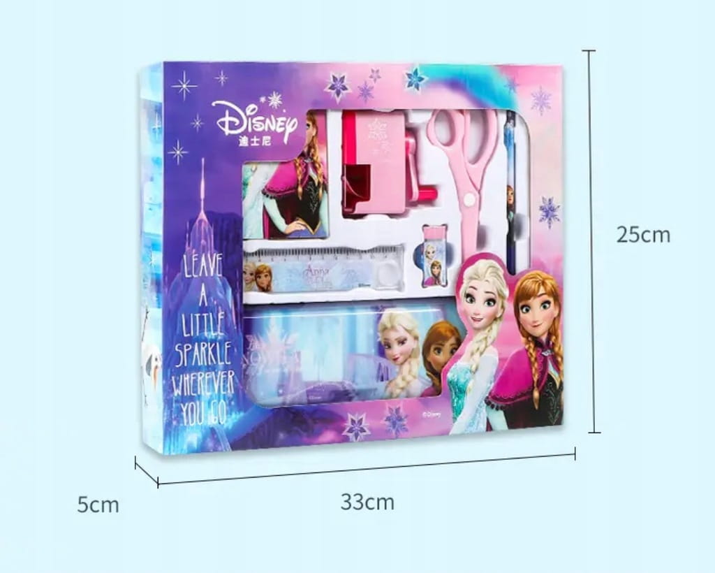 Całość starannie wykonana i zamknięta w estetyczne pudełko. Zestaw ozdobiony jest grafiką najwyższej jakości z bajki Kraina Lodu.