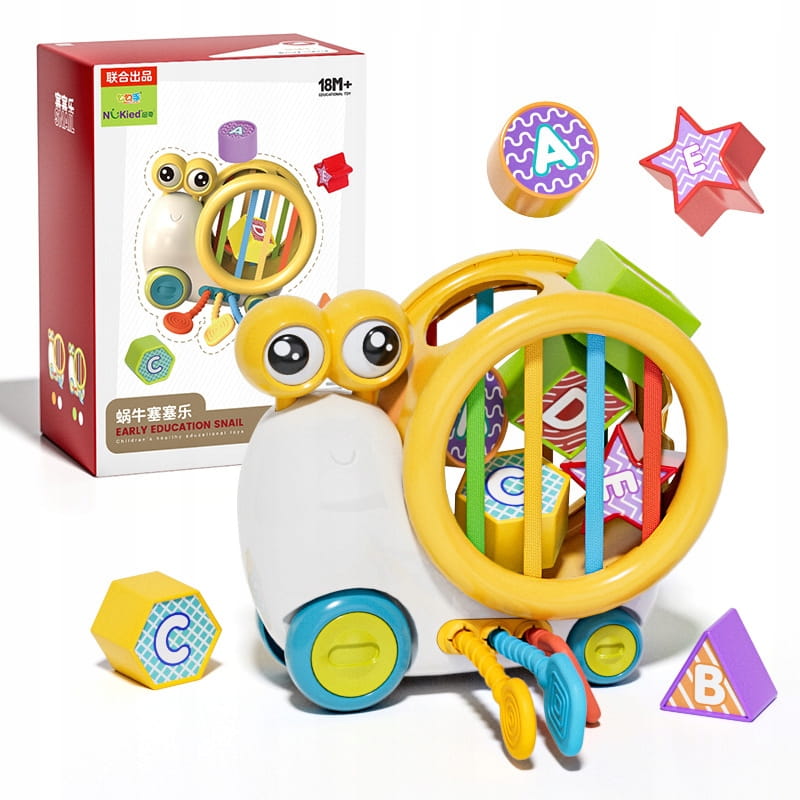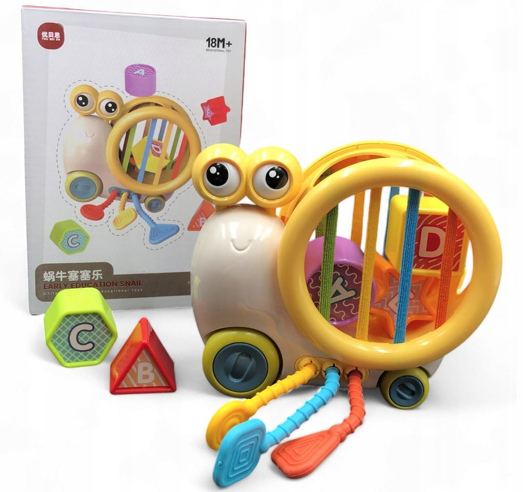 ✅ zabawka w kształcie ślimaka, wyposażona jest w 5 różnych elementów do zabawy,