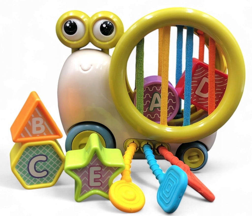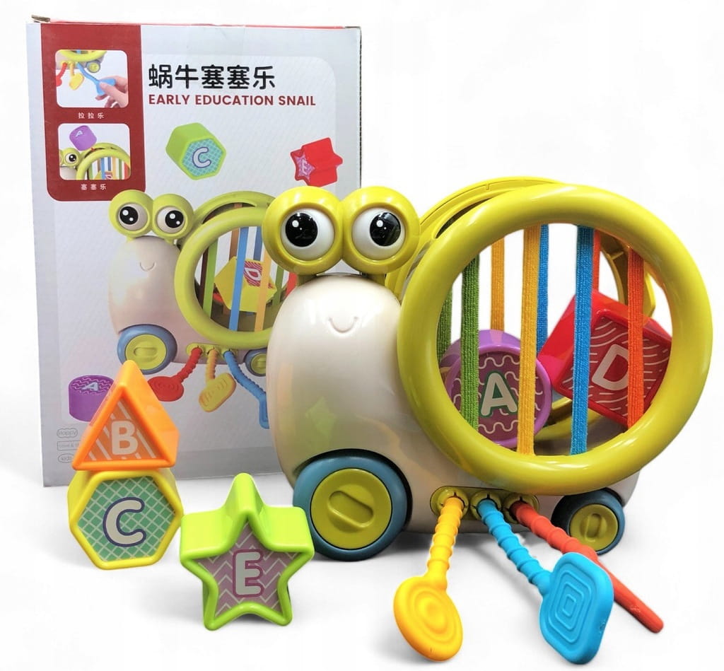 ✅ zabawka w kształcie ślimaka, wyposażona jest w 5 różnych elementów do zabawy,