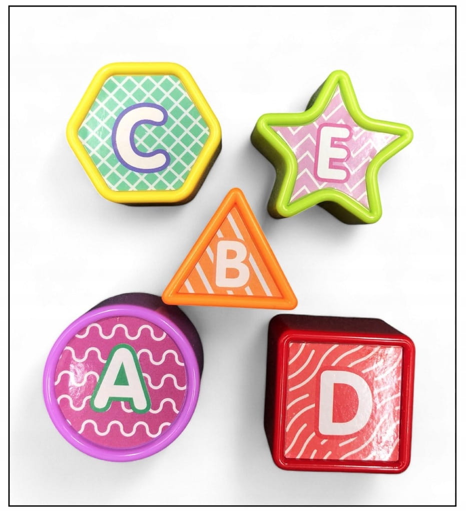 - klocki o różnych kształtach i kolorach, wkładane do ślimaka przez muszlę,